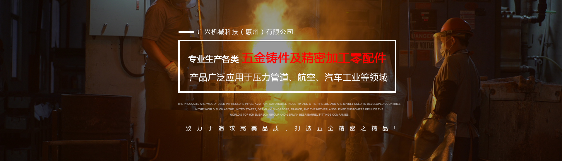 公司專業生產各類五金鑄件及精密加工零配件,可熔煉材質為全系列不銹鋼及碳鋼,主要生產材質有304、316316L17-4430409等,年生產各種不銹鋼鑄件1000余噸。產品廣泛應用于壓力管道、航空、汽車工業等領域,主要銷往美國、德國、新加坡、法國、荷蘭等世界發達國家,固定客戶有世界500強艾默生集團及德國啤酒桶配件公司。